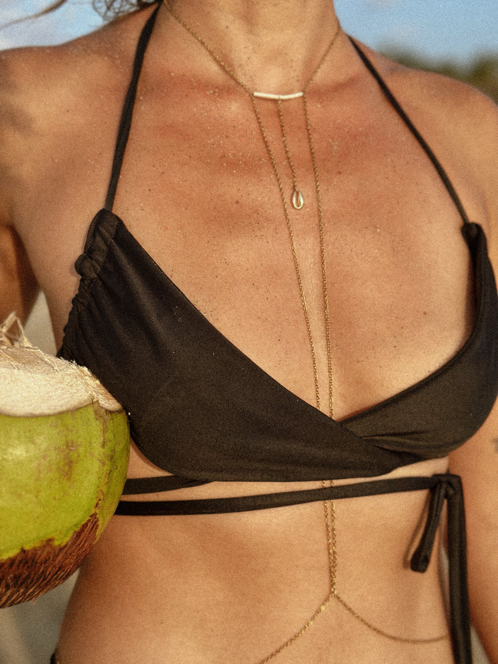 La cadena de cuerpo Camila adorna el cuerpo con ligereza.