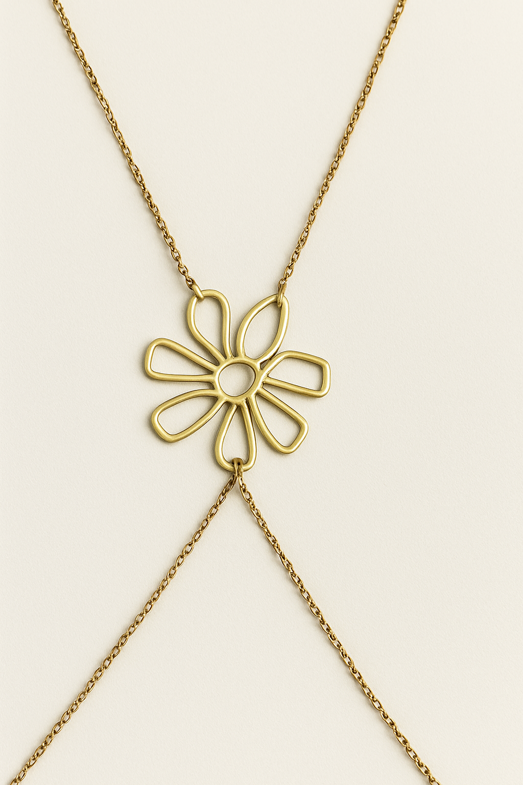 La cadena de cuerpo Paulina se desliza con sutileza bajo un bikini, un vestido ligero o un escote pronunciado.